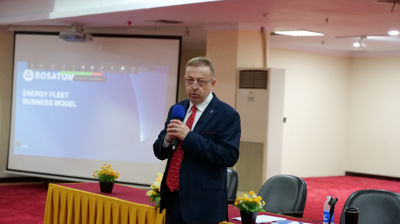 Kegiatan dilanjut dengan pemaparan materi mengenai kerangka regulasi PLTN di Indonesia oleh Direktur Pengaturan Pengawasan Instalasi Bahan Nuklir (DP2IBN), Nur Syamsi Syam. Selain itu, kegiatan ini juga memaparkan berbagai materi, seperti skema kerja sama proyek PLTN terapung, konsep keselamatan FPU, struktur hidroteknik di darat, serta aspek regulasi proyek FPU dan tantangan pengembangan PLTN terapung (FNPP) di Indonesia yang disampaikan oleh perwakilan ROSATOM.