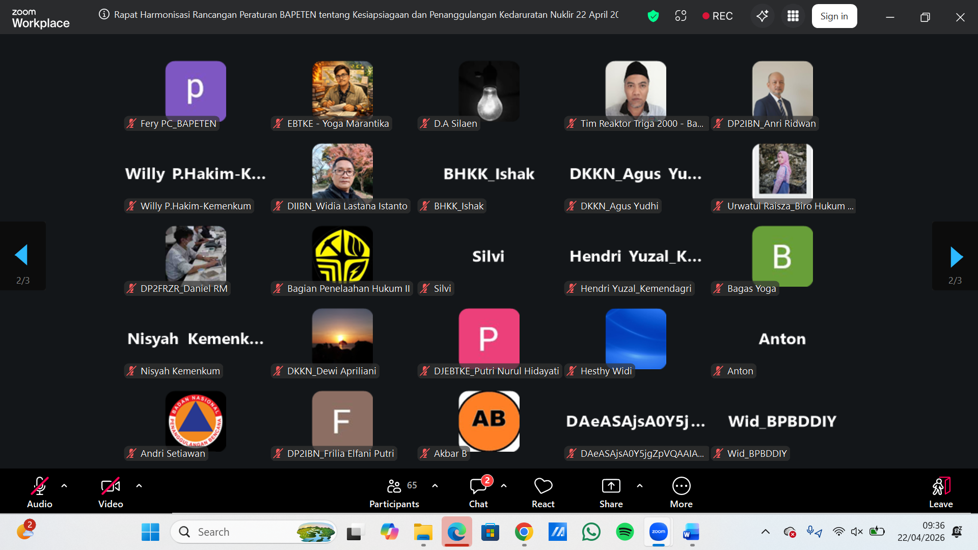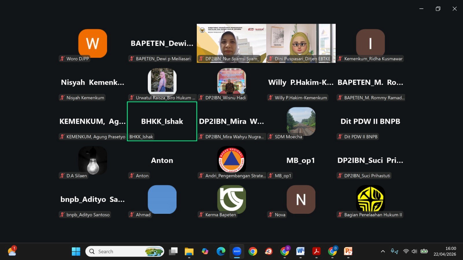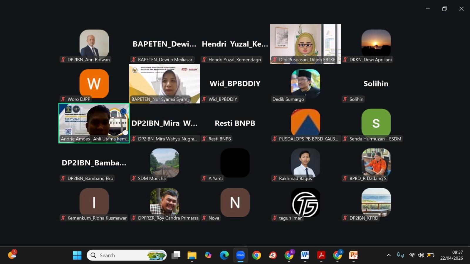 Kembali 22 April 2026 | Berita BAPETEN | 19 lihatBAPETEN melalui Direktorat Pengaturan Pengawasan Instalasi dan Bahan Nuklir (DP2IBN) melanjutkan Harmonisasi Rancangan Peraturan Badan (Raperba) Kesiapsiagaan dan Kedaruratan Nuklir untuk Perkuat Regulasi Nasional. Rapat Harmonisasi dilaksanakan sebagai bagian dari upaya penyempurnaan regulasi yang komprehensif, adaptif, dan implementatif. Kegiatan dilaksanakan pada Rabu, 22 April 2026 dan dilakukan secara Hybrid. Kegiatan ini merupakan lanjutan dari proses harmonisasi sebelumnya yang telah dilaksanakan pada 10 April 2026, dengan harapan dokumen final segera memperoleh Surat Keterangan Harmonisasi dari Kementerian Hukum.