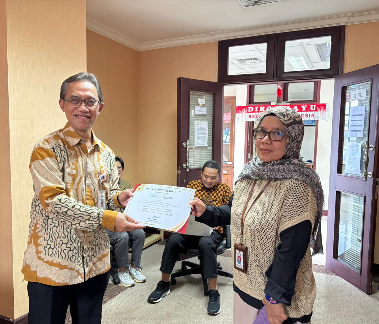 As a form of appreciation, an award in the form of a Best Employee Certificate for the July-September 2025 period was held on 19 December 2025 at the BAPETEN Office. This award aims to encourage DP2FRZR employees to remain motivated in carrying out their duties and to deliver public services in a professional and high quality manner.
