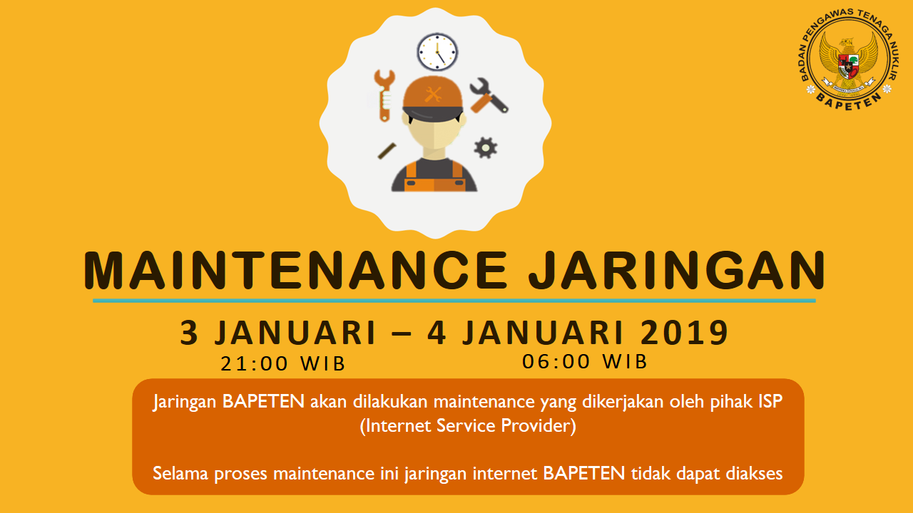Pemeliharaan Jaringan BAPETEN Tgl 3-4 Januari 2019