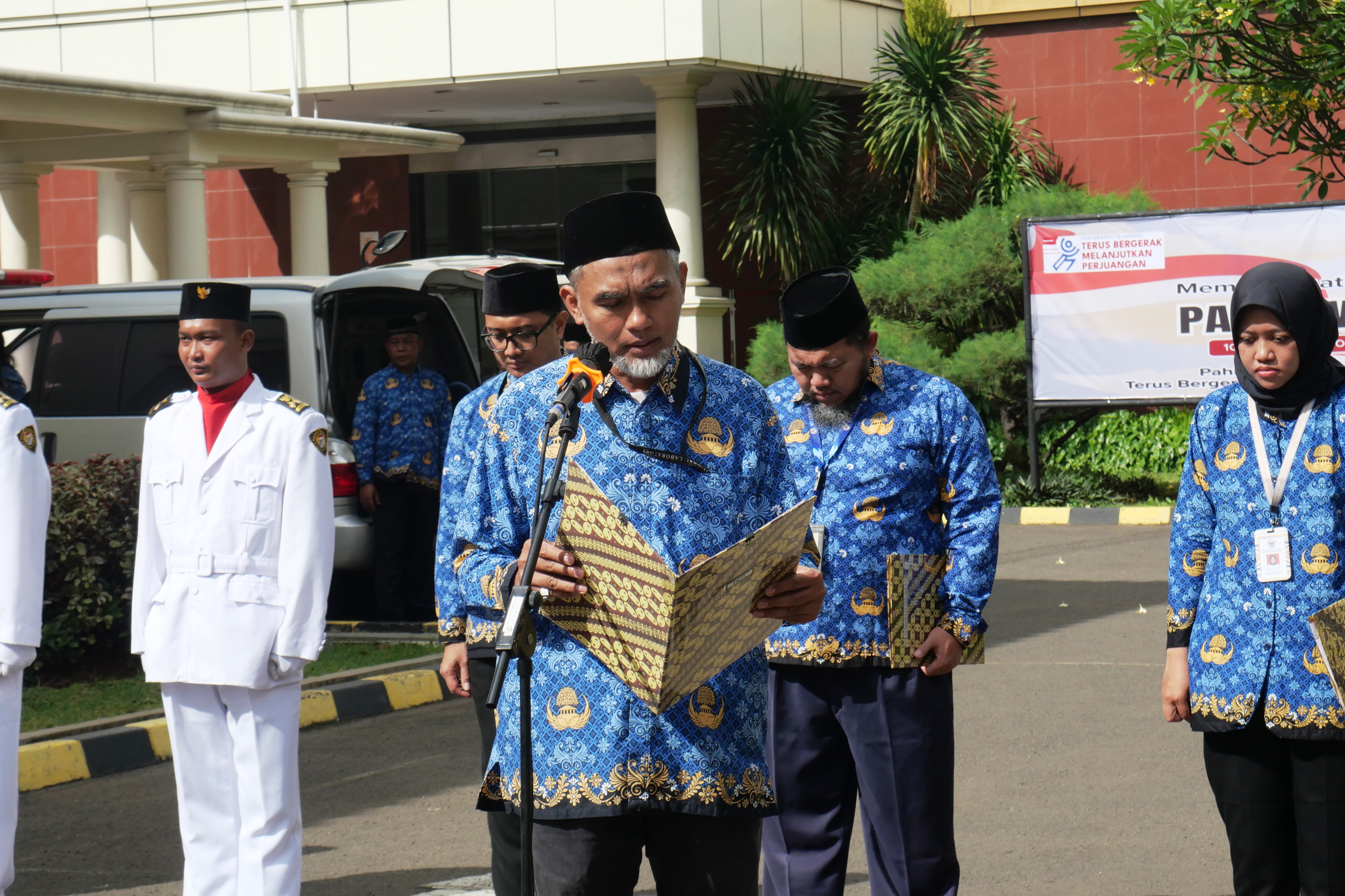 "A great nation is a nation that honors the services of its heroes." This spirit resonated at BAPETEN as all employees gathered to participate in the 2025 Heroes Day Flag Ceremony. The ceremony was held solemnly at the BAPETEN Office courtyard in Jakarta on Monday, November 10, 2025.