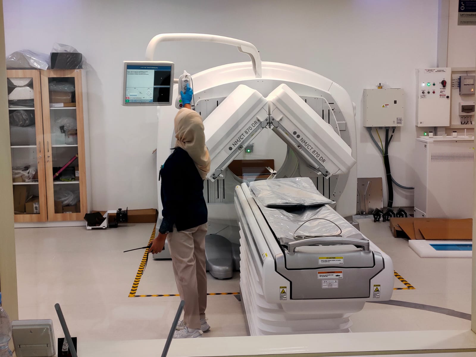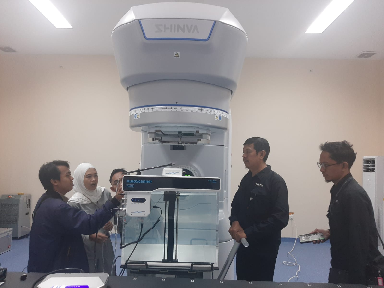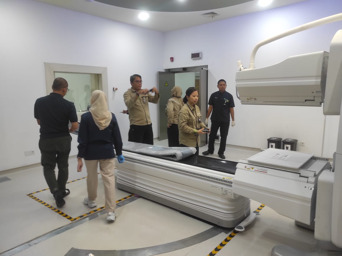 Pemeriksaan juga meliputi pengujian unjuk kerja peralatan utama dan pendukung, pengukuran paparan radiasi dan dosimetri, evaluasi alur pelayanan pasien, serta verifikasi kompetensi personel dalam mengoperasikan LINAC, PET/CT, dan SPECT/CT. Selain itu, dilakukan pemeriksaan terhadap sistem proteksi dan keamanan sumber radioaktif.