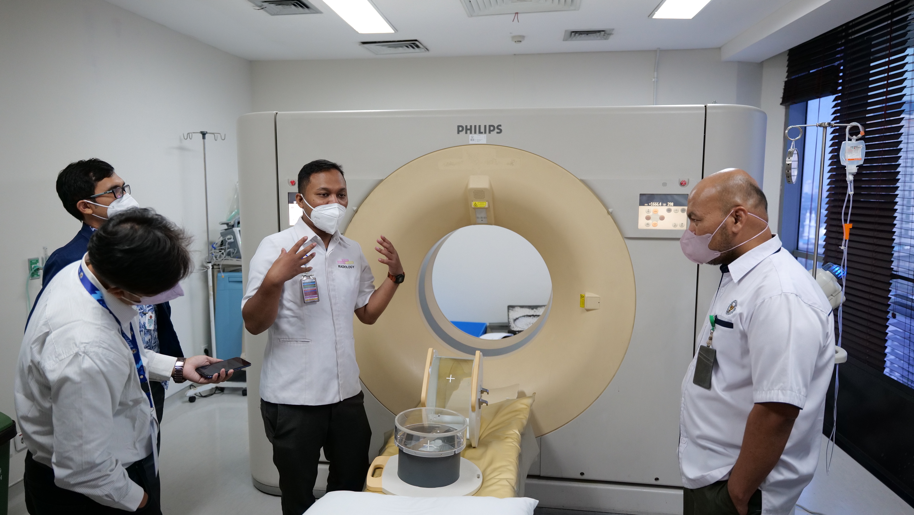 Kepala Sub Kelompok Fungsi Penyelenggaraan dan Sarana Pelatihan Ummul Khair mengatakan dalam sambutannya terima kasih kepada MRCCC Siloams Hospitals Semanggi atas kesempatan yang diberikan. “Sebagai salah satu RS yang memiliki fasilitas kedokteran nuklir terlengkap, kami berharap bisa melihat secara langsung dan belajar cara kerja alat Kesehatan berbasis nuklir,” tambahnya.