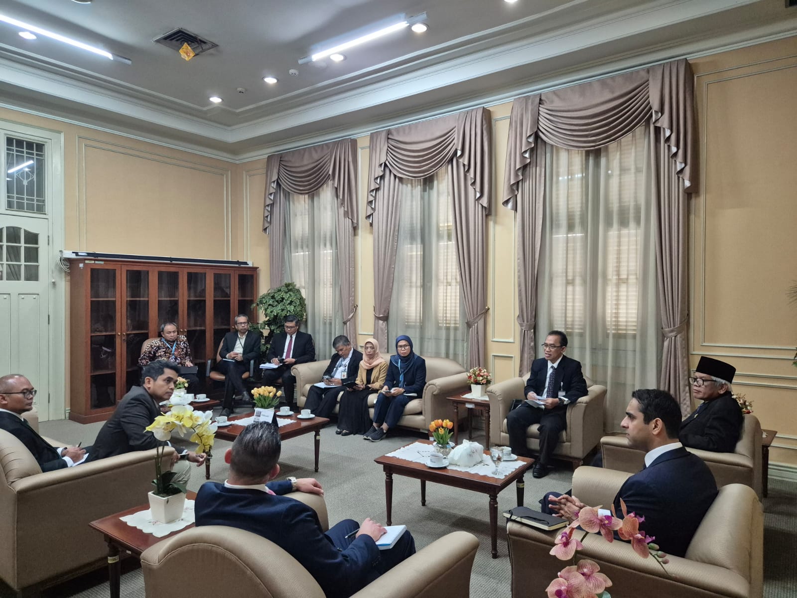 Dalam Courtesy Call ini dihadiri oleh Plt Kepala BAPETEN Zainal Arifin, Deputi Bidang Pengkajian Keselamatan Nuklir Haendra Subekti, Kepala Biro Hukum, Kerja Sama dan Komunikasi Publik Ishak, Direktur Inspeksi Instalasi dan Bahan Nuklir (DI2BN) Lukman Hakim, Direktur Pengaturan Pengawasan Fasilitas Radiasi dan Zat Radioaktif (DP2FRZR) Mukhlisin, Direktur Pengaturan Pengawasan Instalasi dan Bahan Nuklir (DP2IBN) Nur Syamsi Syam beserta staf terkait.
