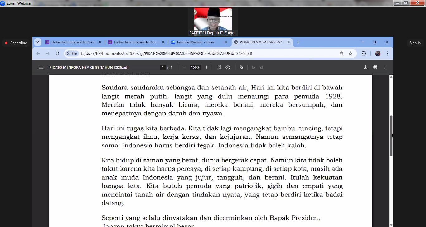 The 97th Youth Pledge Day Commemoration in 2025 was held online on October 28, 2025, due to rainfall. The ceremony was attended by all BAPETEN employees and the DPN Korpri.