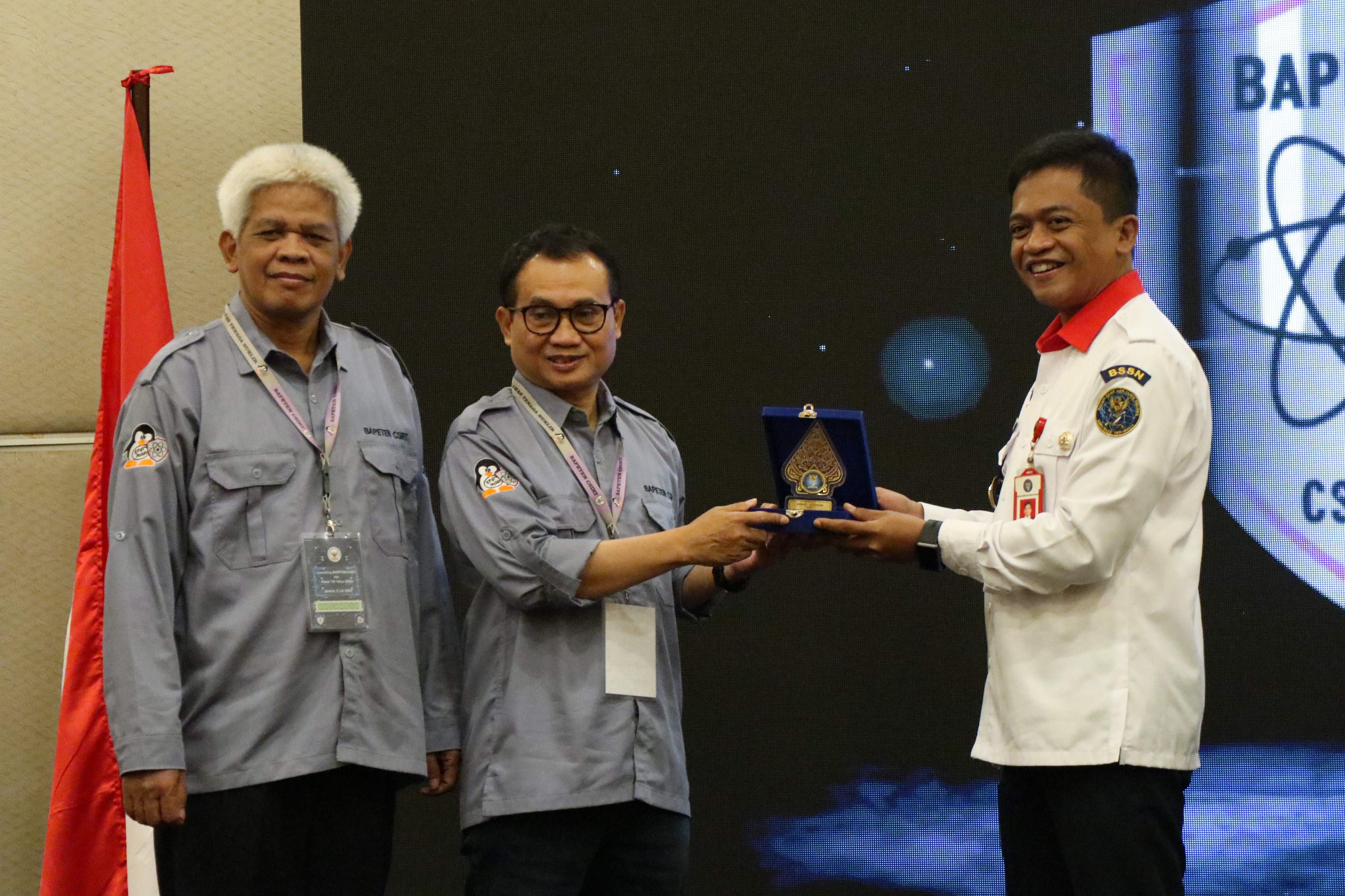 Rangkaian kegiatan dilanjutkan acara puncak yaitu peluncuran “Launching BAPETEN CSIRT” secara Biometrik dan penyerahan plakat oleh BSSN kepada BAPETEN.