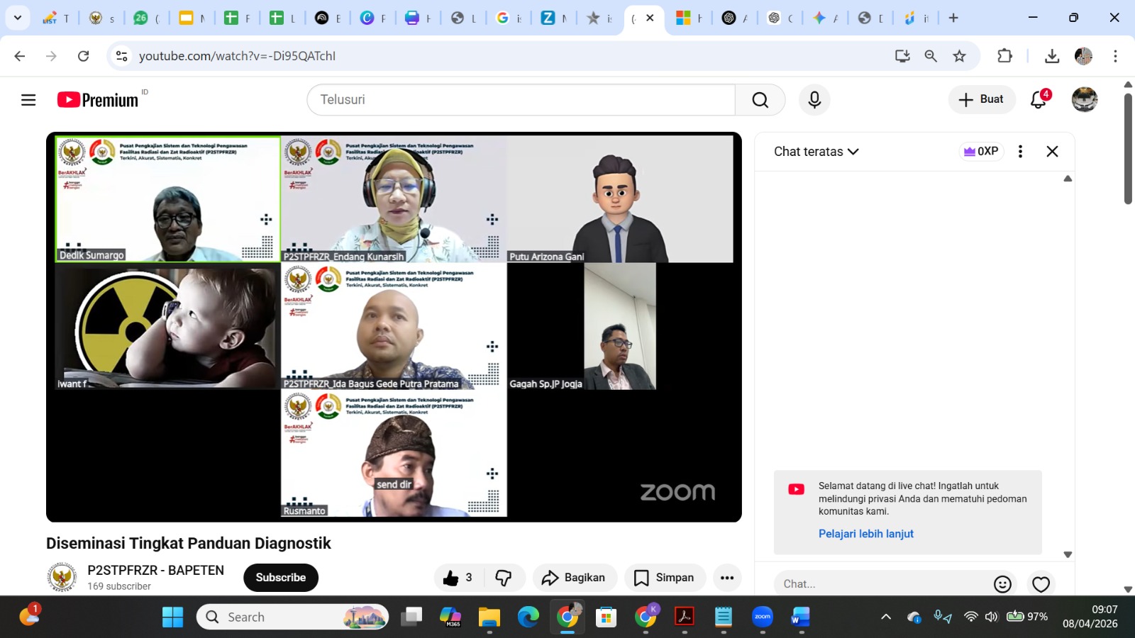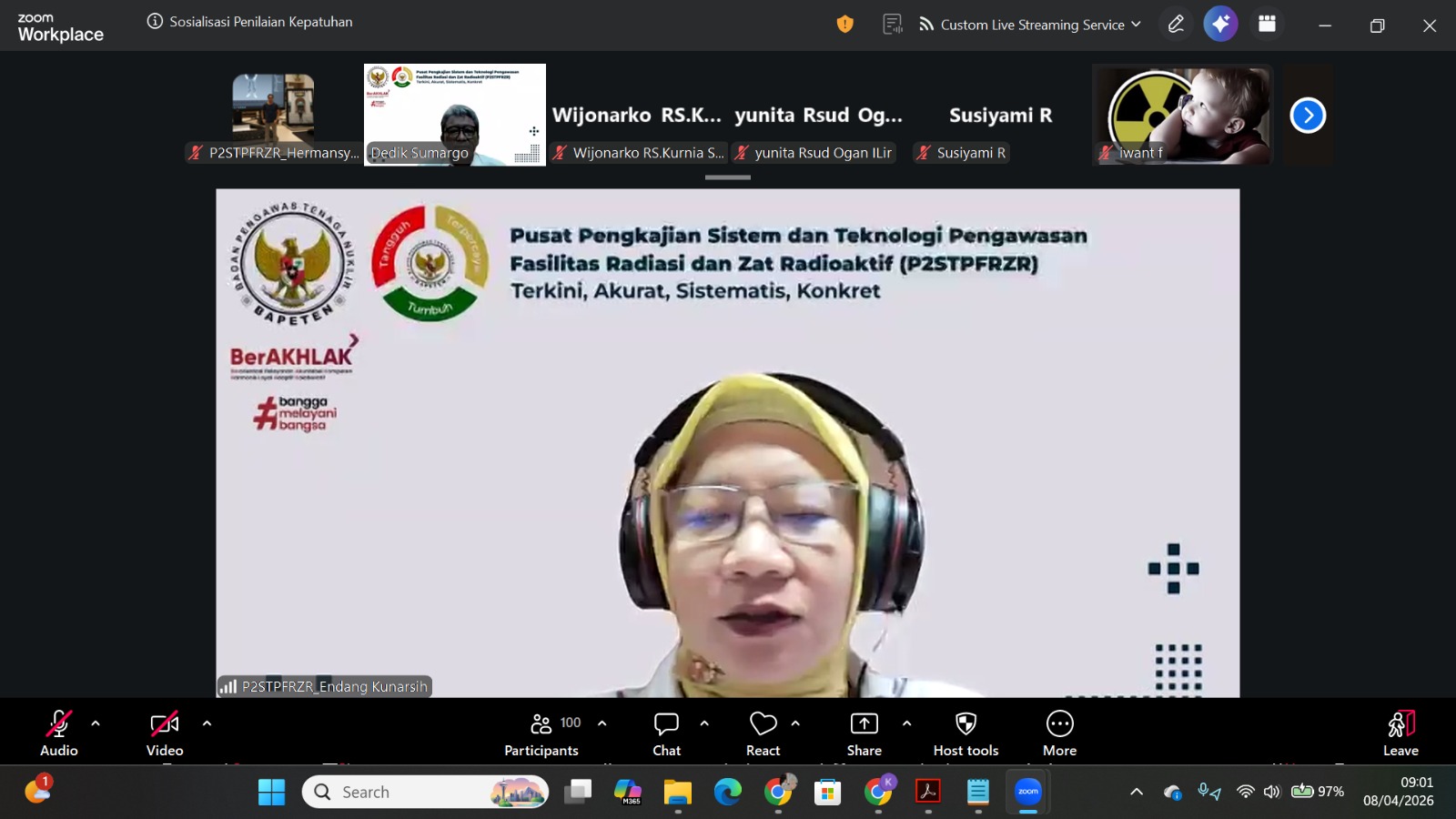 Selain itu, kewajiban pelaporan data dosis radiasi pasien kepada BAPETEN diatur dalam Peraturan Badan Pengawas Tenaga Nuklir (Perbapeten) Nomor 4 Tahun 2020 tentang Keselamatan Radiasi Pada Penggunaan Pesawat Sinar-X dalam Radiologi Diagnostik dan Intervensional, yang mengharuskan fasilitas kesehatan melakukan pencatatan dan pelaporan data dosis pasien secara berkala melalui Sistem Informasi Data Dosis Pasien (Si-INTAN). Atas dasar itulah, Pusat Pengkajian Sistem dan Teknologi Pengawasan Fasilitas Radiasi dan Zat Radioaktif (P2STPFRZR) BAPETEN mengadakan Sosialisasi penilaian penerapan Tingkat Panduan Diagnostik dan hasil penetapan Tingkat Panduan Diagnostik Indonesia pada Rabu, 8 April 2026 secara daring,