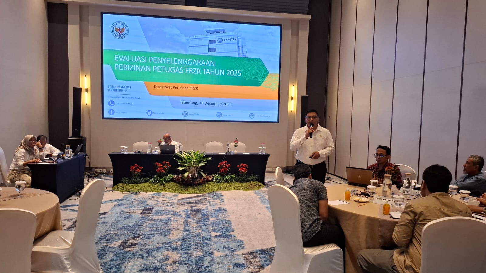 Kembali 16 Desember 2025 | Berita BAPETEN | 177 lihatBAPETEN held a National Coordination Meeting on the Evaluation of the Implementation of Radiation Facility Personnel Licensing on 15–16 December 2025 in Bandung. The meeting was attended by relevant stakeholders and aimed to review the effectiveness of nuclear energy supervision during the 2025 fiscal year.
