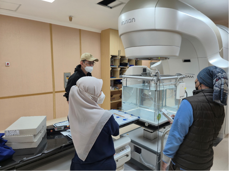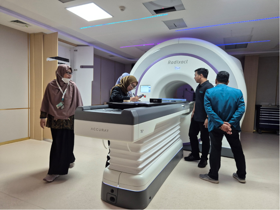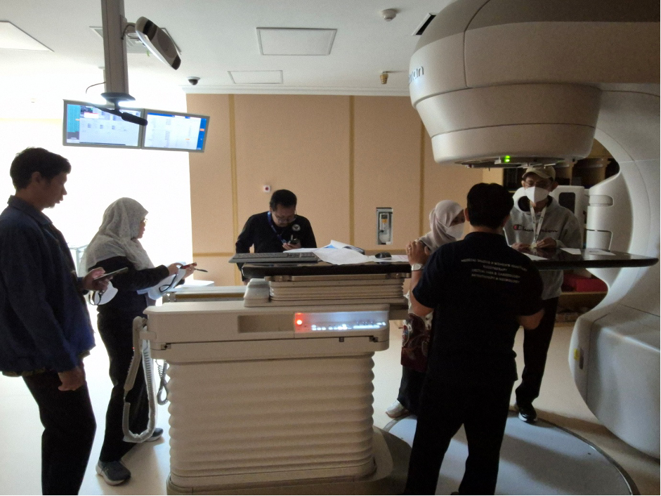 Tim Inspeksi yang diketuai oleh Pengelola Kegiatan Kelompok Fungsi Perizinan Fasilitas Kesehatan (DPFRZR) BAPETEN, Herry Irawan beserta anggota tim melakukan verifikasi untuk Fasilitas Radioterapi dengan modalitas yaitu Pesawat LINAC merk Varian tipe True Beam, Pesawat Tomotherapy merk Accuray tipe Radixact X9 dan Pesawat IORT merk Carl Zeiss Meditec AG tipe Intrabeam 600.