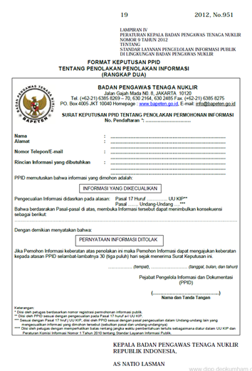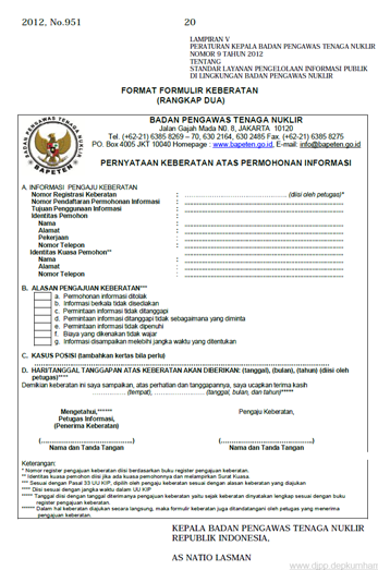 Formulir keberatan atas permohonan informasi
